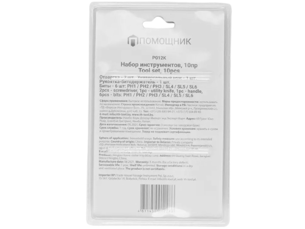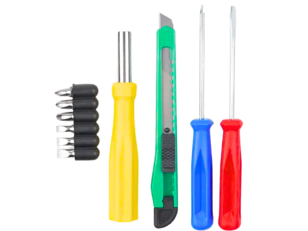 10-частичен комплект инструменти – битове, отвертка с държач и макетен нож