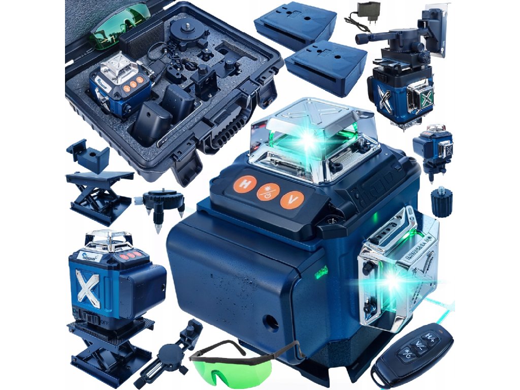 Този 4D лазерен нивелир 360° с 2 батерии зелен с обхват до 40 метра предлага максимална точност за професионално измерване. Благодарение на зелената лазерна технология, автоматичното нивелиране и дългия живот на батерията, той е идеален инструмент за различни строителни и монтажни дейности. Моделът включва две акумулаторни батерии, които гарантират непрекъсната работа през целия работен ден.