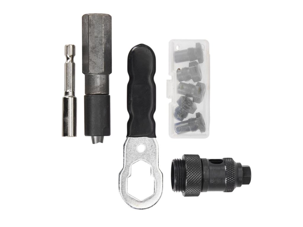 Професионална заклепвачка за акумулаторен винтоверт 3в1 от марката Kraft&Dele, модел KD5470, с адаптер за заклепкови гайки и заклепки е иновативен инструмент, проектиран за бързо и здраво свързване на елементи в широк спектър от приложения.