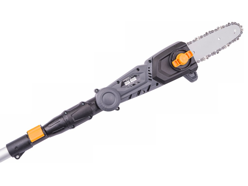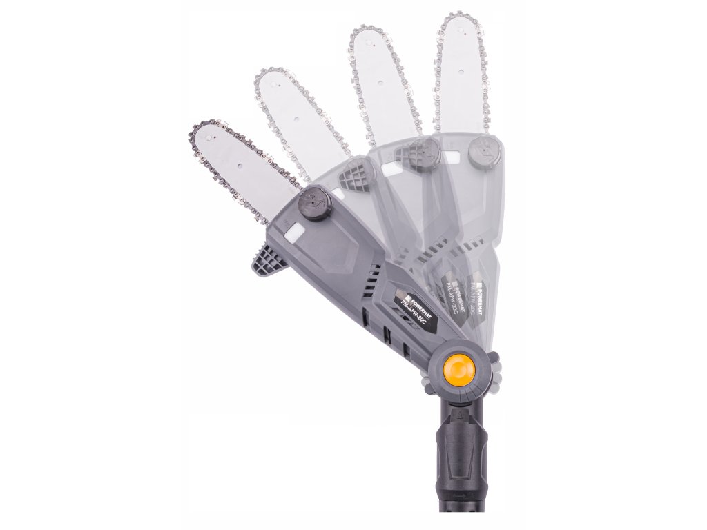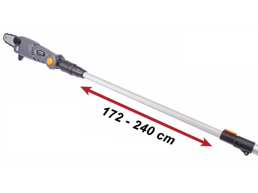 Електрическа резачка с удължена дръжка от марката Акумулаторен телескопичен трион 240 см PM-APW-20C е оборудвана с качествено водещо шина и верига, и предлага четиристепенно регулируем наклон за лесна употреба. Благодарение на бързото и лесно регулиране на дължината на удължената дръжка от 172 см до 240 см и възможността за настройка на ъгъла на наклона на режещата глава, се превръща в идеален инструмент за рязане на дръвчета и клони.