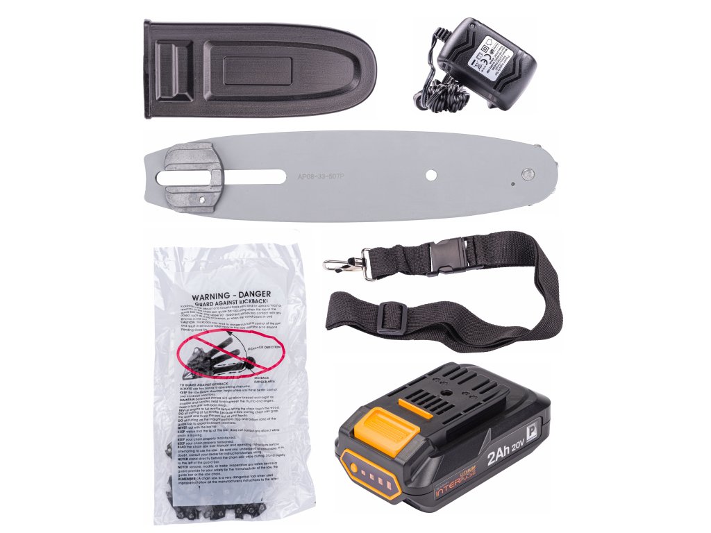 Електрически мотор с 20V - 2Ah акумулатор осигурява достатъчна мощност за рязане дори на дебели клони. Дължината на водещата шина е 20 см, а работната дължина е 18 см, което гарантира ефективна работа при различни задачи. Качествените материали, използвани при производството, гарантират висока стабилност и намаляват умората при работа.