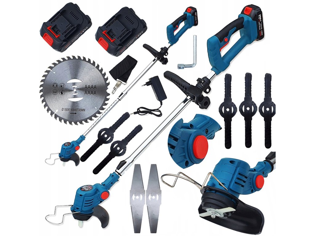 Мощната и същевременно лека акумулаторна косачка за трева 36V с 2 батерии е идеална както за косене на трева, така и на по-гъста растителност. Тя използва три вида режещи инструменти – пластмасови ножове, метални ножове и дисков трион, което я прави подходяща както за фини треви, така и за гъсти храсти.