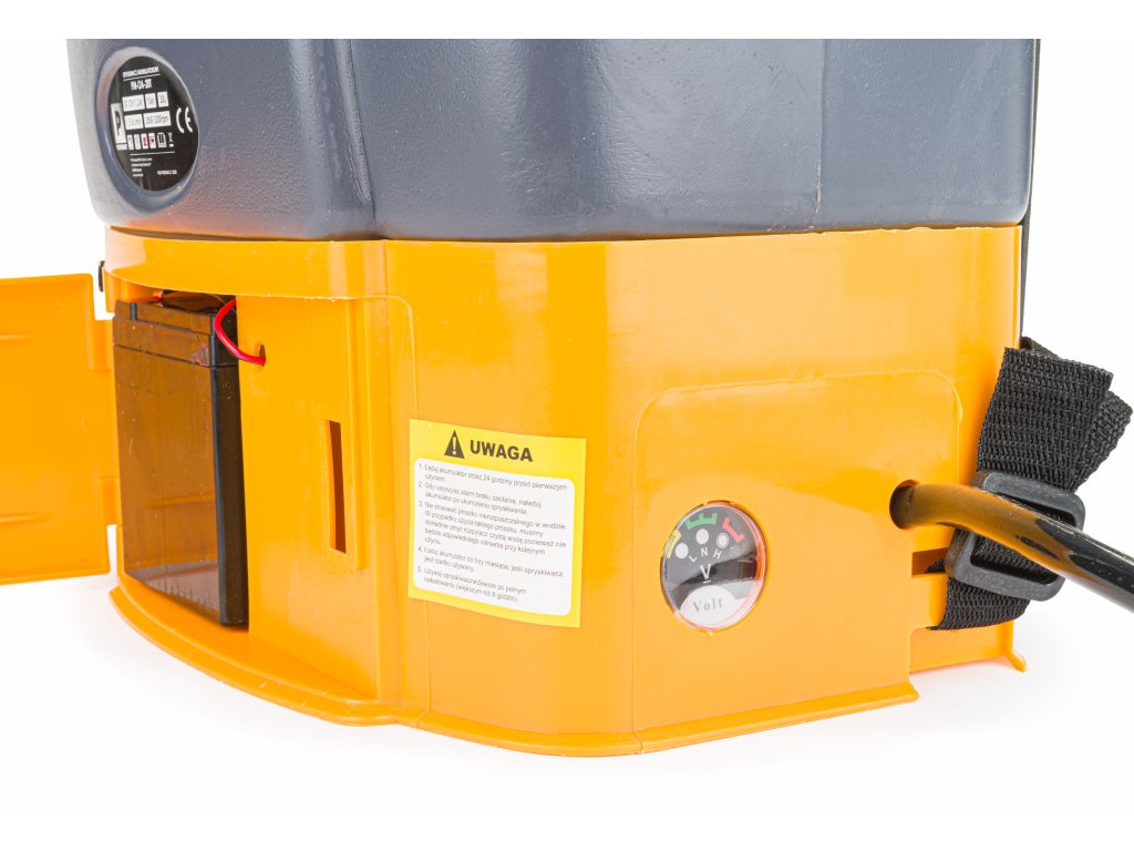 За осигуряване на информация за остатъчния заряд на акумулатора, пръскачката е оборудвана с LED диоди, които светят в 3 цвята и показват оставащото време на работа до изтощаване на акумулатора.