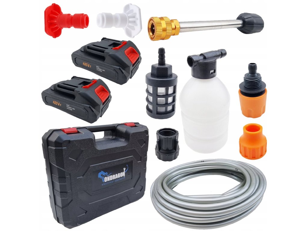 Акумулаторна високо налягане пералня 36V с приставки от марката Ondragon съчетава мощност и мобилност в едно! Благодарение на двата мощни акумулатора, можете да работите без прекъсване, което я прави идеален помощник за почистване на автомобили, прозорци, градински мебели и настилки. Тази пералня предлага гъвкавост и удобство с възможност за избор между различни режими на налягане и разнообразни приставки.