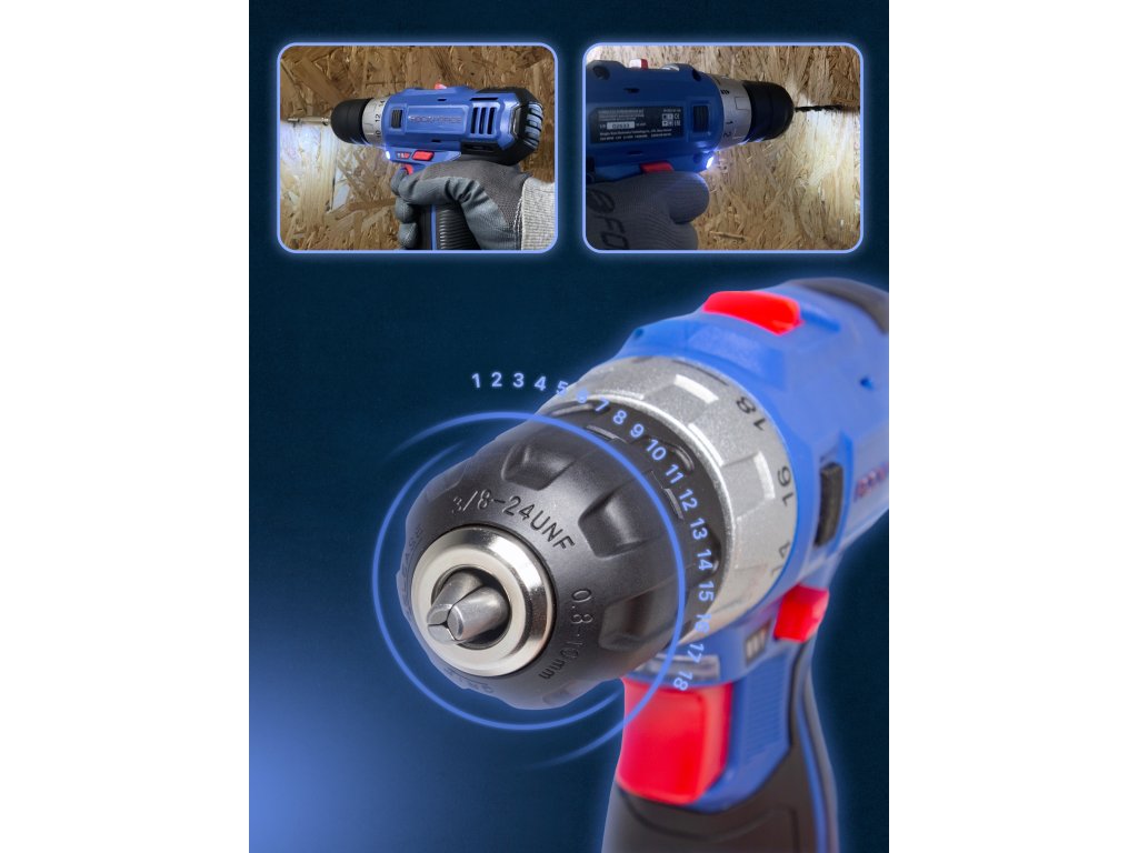 Винтовертът има индикатор, информиращ за състоянието на зареждане на акумулатора, благодарение на което имате пълен контрол върху продължителността на работа на устройството.