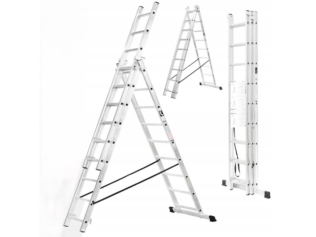 Подгответе се за максимална безопасност и комфорт при работа с нашата алуминиева сгъваема стълба 3x9 рафта 150 кг. Тази индустриална стълба е проектирана да ви осигури стабилност, издръжливост и гъвкавост, от които се нуждаете при работа на височина. Изработена от полирано алуминий, тя е устойчива на износване и атмосферни влияния, което гарантира дълъг експлоатационен живот.
