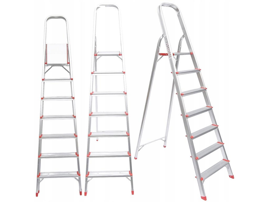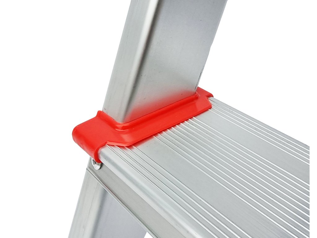 Стълбата е снабдена с противохлъзгащи стъпала и просторна, ребриста платформа, което гарантира безопасна употреба дори при по-тежки условия. Благодарение на стабилната конструкция от здрави материали тя може да издържи натоварване до 125 кг, идеална за ежедневна употреба в дома.