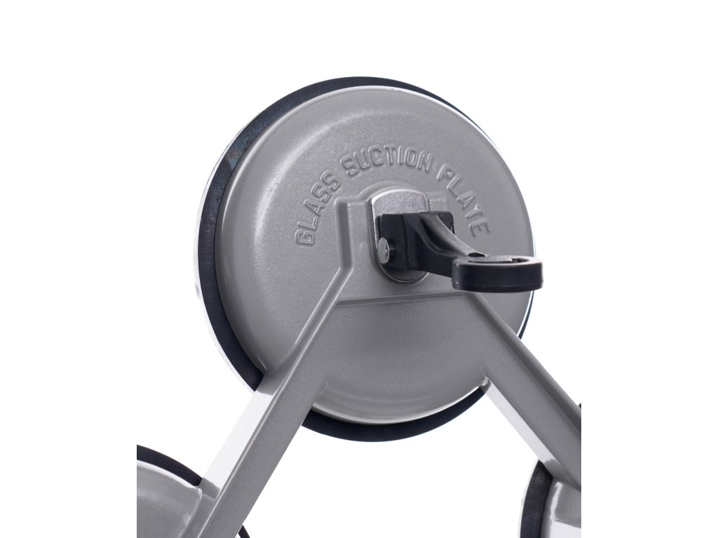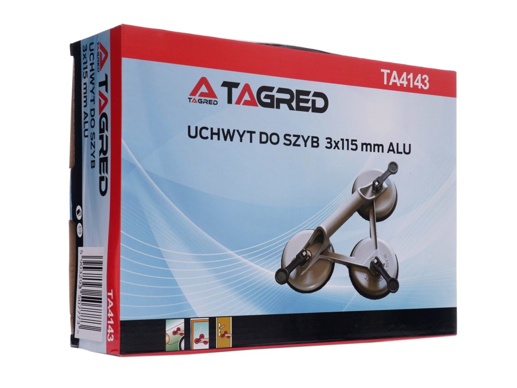 Професионална алуминиева тройна вендуза за стъкло, държач TAGRED е проектирана за ефективно пренасяне на различни елементи с гладка повърхност. Идеална за стъкла, прозорци, автомобилни прозорци, ламарини, ламинирани повърхности и други материали с тегло до 150 кг.