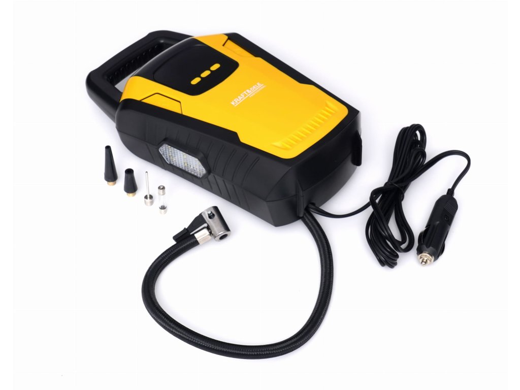 Преносим автомобилен компресор / въздушен компресор 12V на марка Kraft&Dele, модел KD1469, с LED дисплей, подходящ за коли, мотоциклети, велосипеди, различни топки и т.н.
