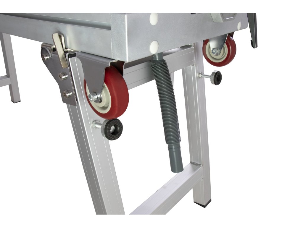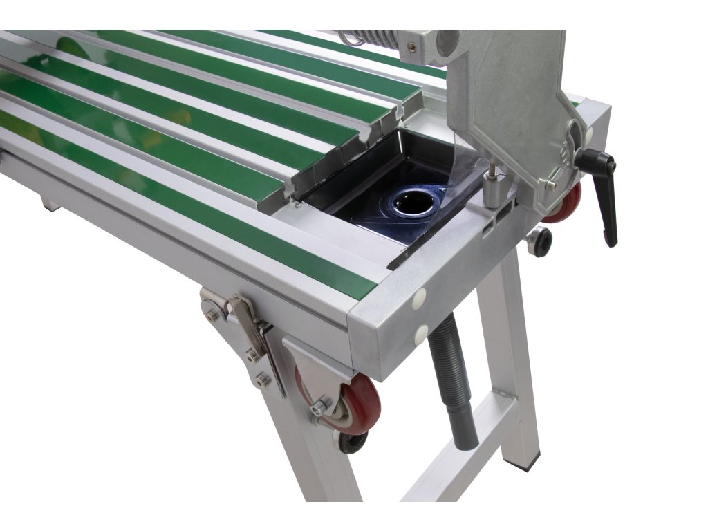 Резачката PM-PDG-2300M е оборудвана с ваничка, която събира излишната прах и вода, предотвратявайки изтичането им отстрани на масата. Водата се отвежда по канал и тръба към резервоар, който може да бъде поставен до масата.