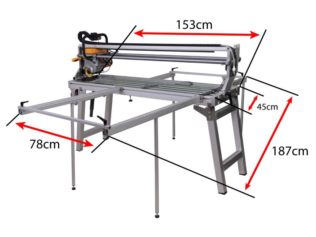 Работната маса с ширина 450 мм и дължина 1200 (+) мм осигурява удобство при работа и прецизно рязане на плочки с дължина до 1200 мм.