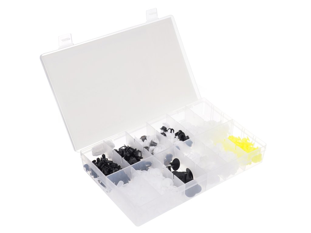 Всички скоби са внимателно организирани в качествена кутия с удобни отделения, което улеснява достъпа до тях и съхранението. Този комплект е идеален за автомеханици, собственици на автомобили и любители на „направи си сам“, които искат да имат всички необходими скоби под ръка.
