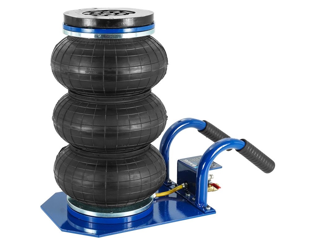 BAUG Възглавница хидравличен крик 3,5 т двоен дръжка е идеален за използване в автосервизи, гумаджийници и селскостопански предприятия. Този "възглавничен крик" може да повдигне точково превозни средства с тегло до 3,5 тона. Комплектът включва гумена подложка, която предпазва праговете и носещите части от надраскване и повреда. Гумата осигурява безопасно повдигане и улеснява позиционирането на крика, което значително ускорява и опростява работния процес. Крикът се захранва със сгъстен въздух при работно налягане от 5 до максимум 10 бара.