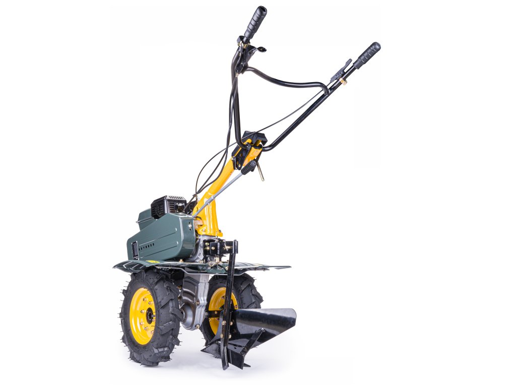 Ергономичните дръжки улесняват управлението на бензиновия мотокултиватор, разположението им е оптимизирано за максимален комфорт при работа. На дясната дръжка се намира лост за регулиране на дроселовата клапа на двигателя.