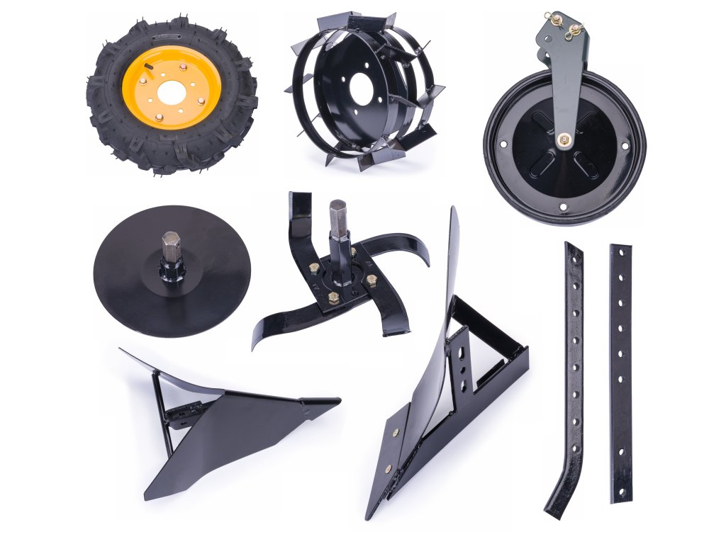 В комплекта получавате 6 ножа, които се закрепват посредством щифтове. Благодарение на тази конструкция може да се монтират 1, 2 или 3 двойки ножове, което съответства на работни ширини от 280 мм, 500 мм и 900 мм.