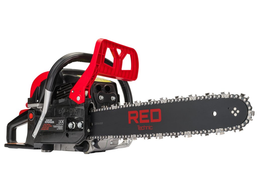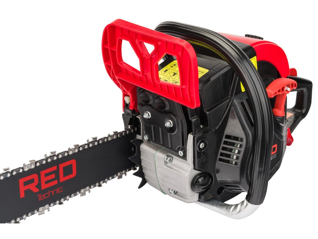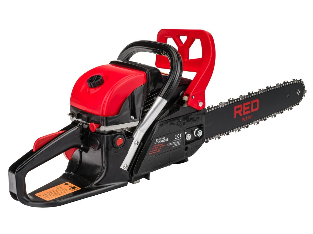 Бензиновият верижен трион RTPSP0035 от марката RED TECHNIC е най-новият модел, предназначен както за аматьорска, така и за професионална употреба. Максималната мощност от 5,7 к.с. се постига благодарение на двигателя с обем 49,3 см³.