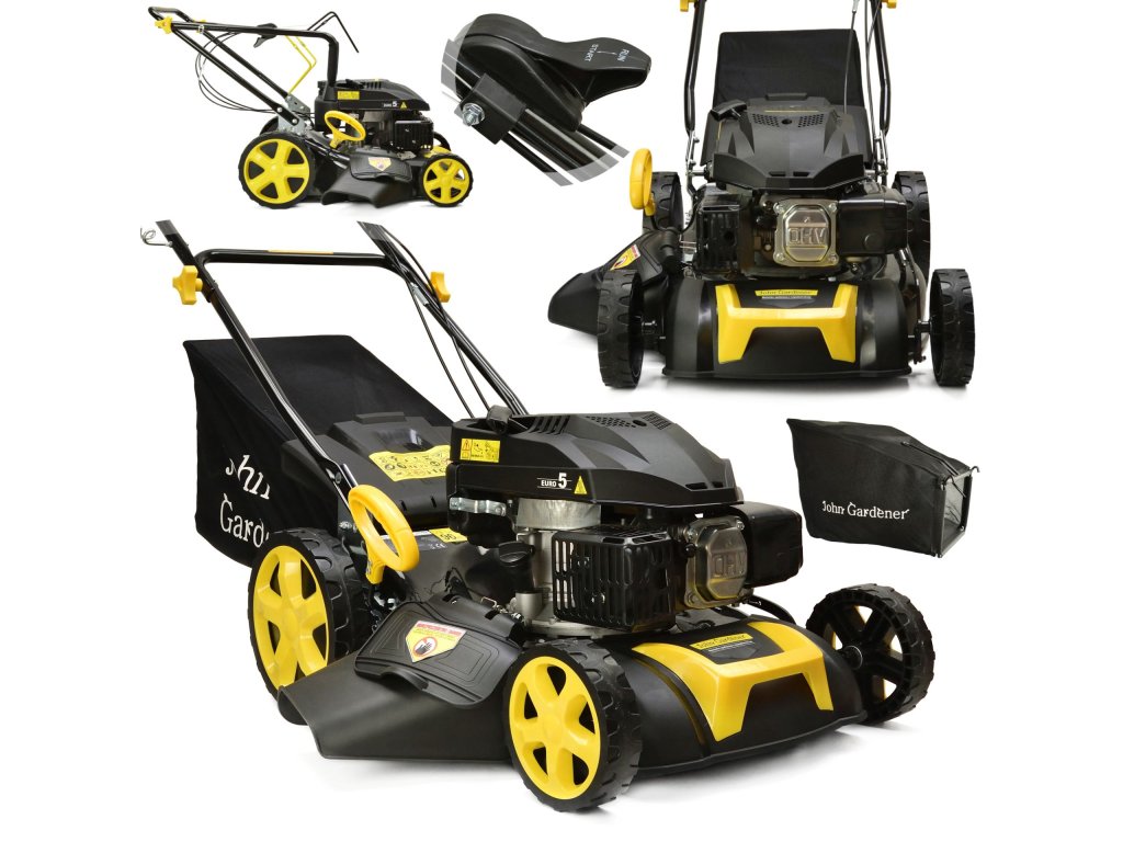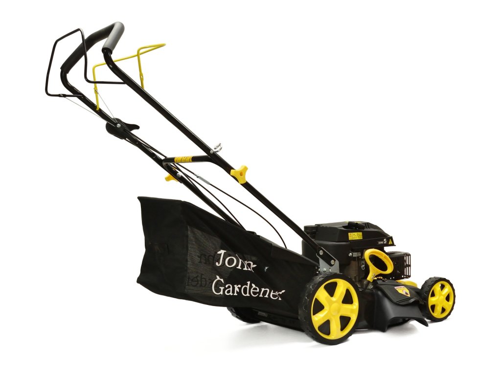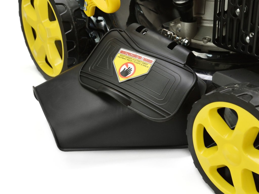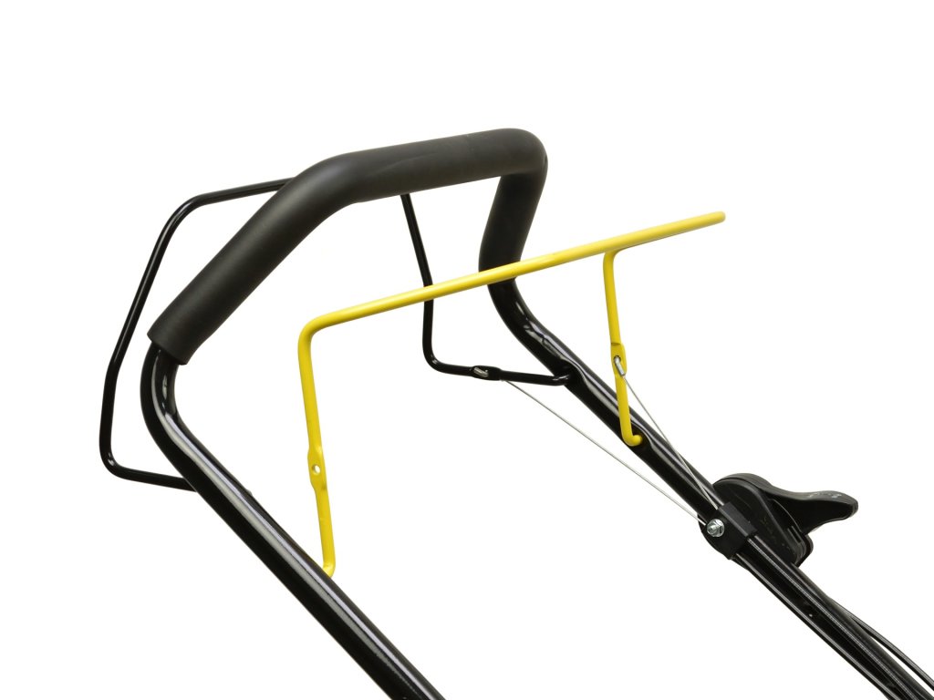 Тази косачка има ширина на косене 460 мм и предлага 8-степенно регулиране на височината на косене от 25 до 75 мм. Удобното управление е гарантирано от задвижването и възможността за странично или заден изхвърляне на тревата в контейнера.