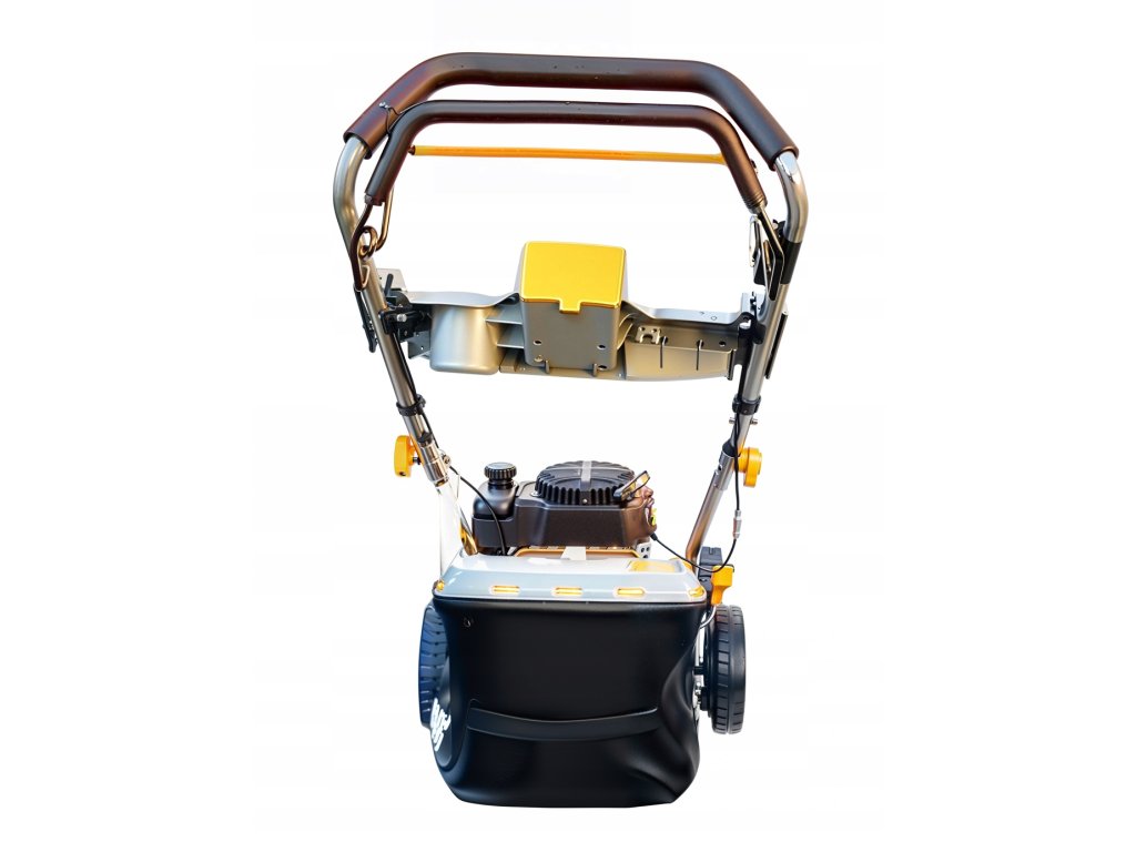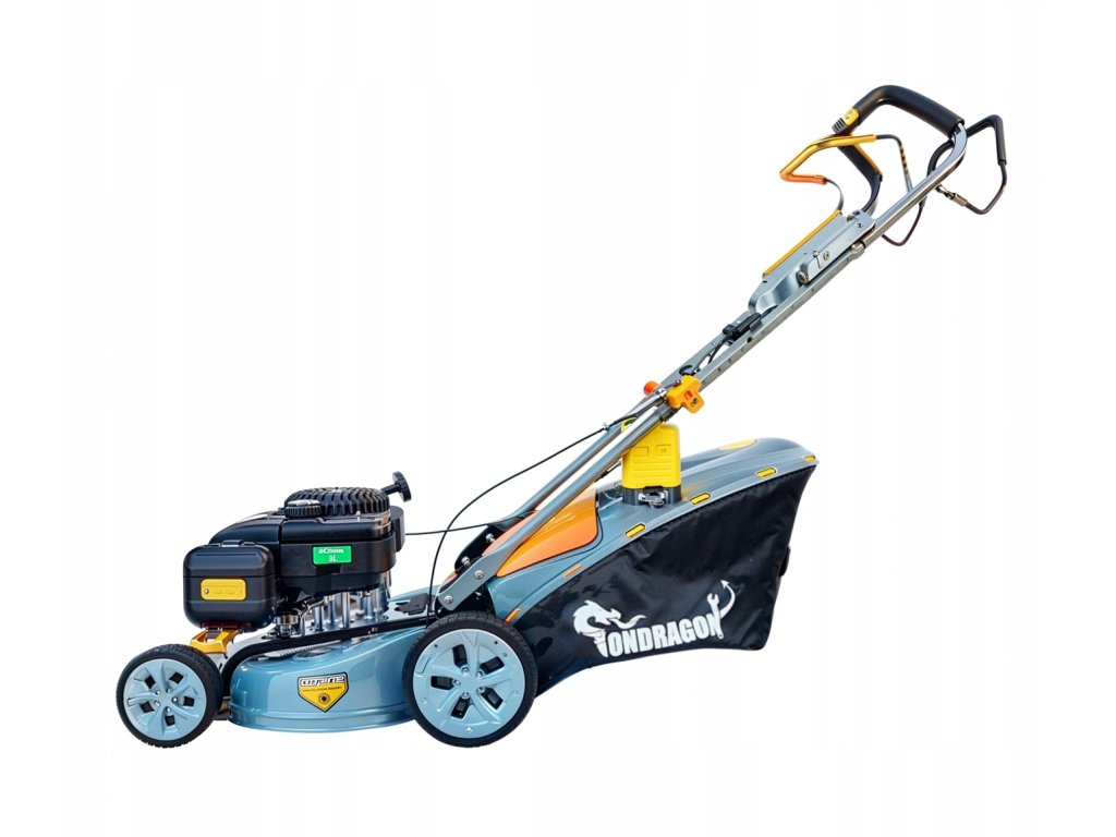 - Мощен бензинов двигател: 4-тактов мотор с мощност 6 к.с. осигурява достатъчна сила за ефективно косене дори на плътна трева.