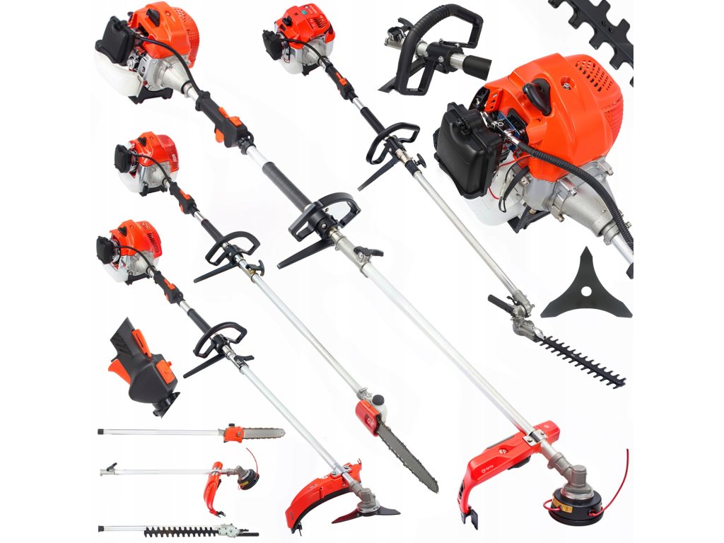 - Функции: Коса, трион за клони, ножове за жив плет, кордена глава