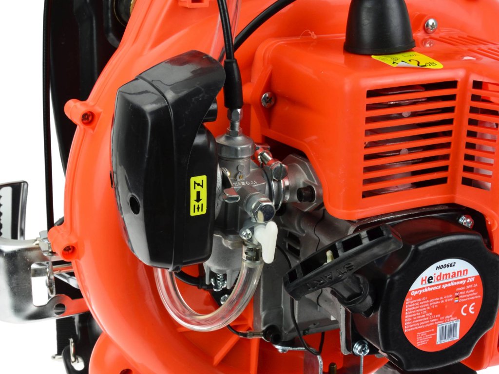 Раницова бензинова пръскачка с резервоар с вместимост 20 литра е универсален, преносим и високо ефективен инструмент. Надежден и мощен двигател лесно се справя с пръскането или нанасянето на торове. Благодарение на качественото изработка на компонентите, двигателят минимализира излъчването на излишни вибрации. Производителността на пръскане достига приблизително 4 литра течност на минута работа. Устройството е монтирано на меки гумени тампони, което минимизира предаването на вибрации.