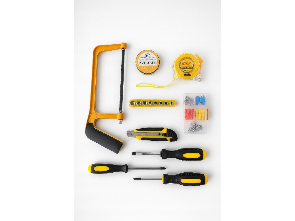 - Nůž, svinovací metr, ruční pila