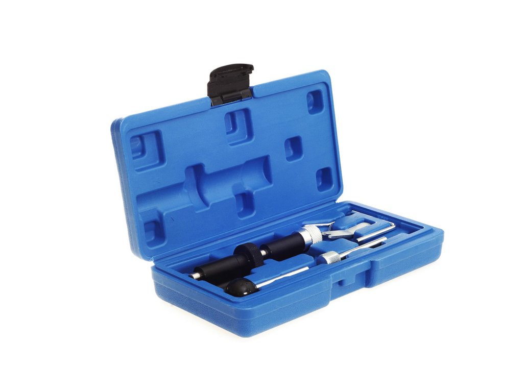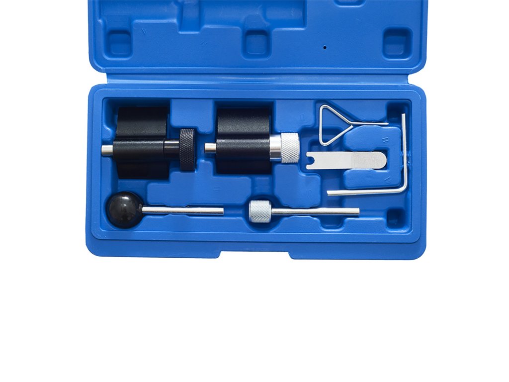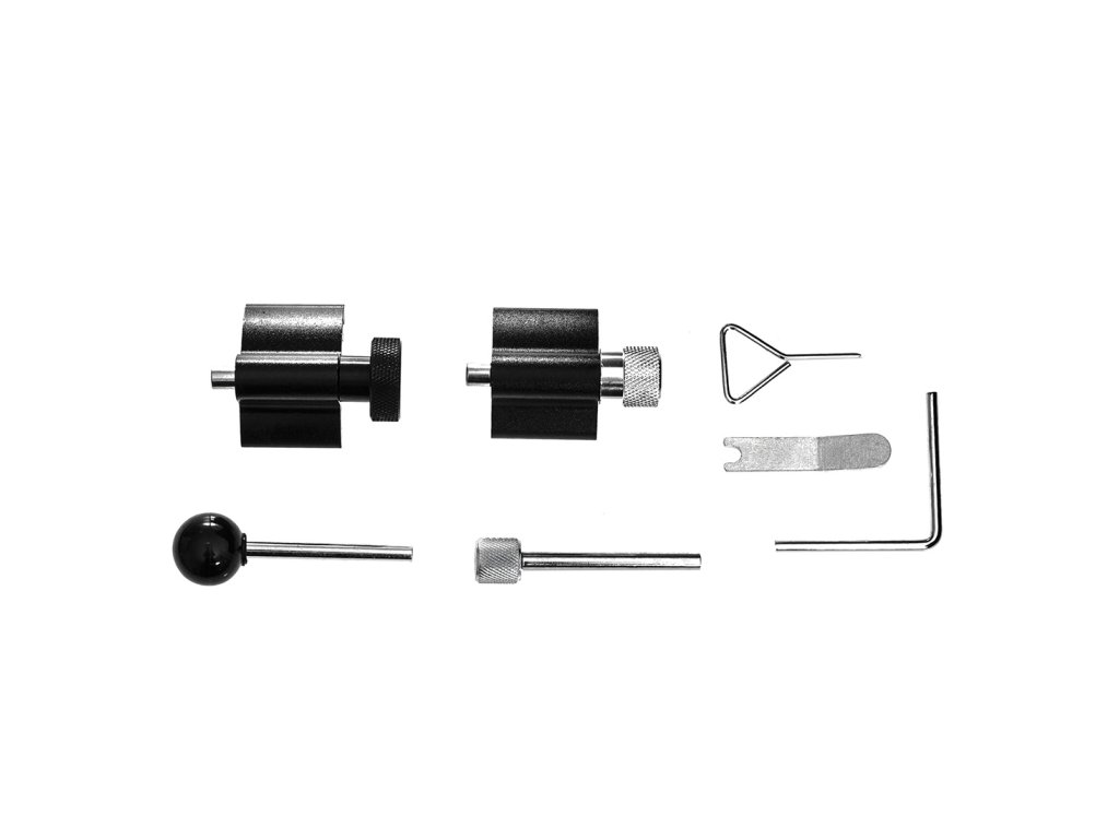 Описание на продукта: Професионален комплект за блокиране на разпределителни колела, който позволява заключване на разпределителните зъбни колела в сервизна позиция при смяна на ангренажния ремък. Специалната форма на блокиращите елементи осигурява точно позициониране на контролните точки за запалване.
