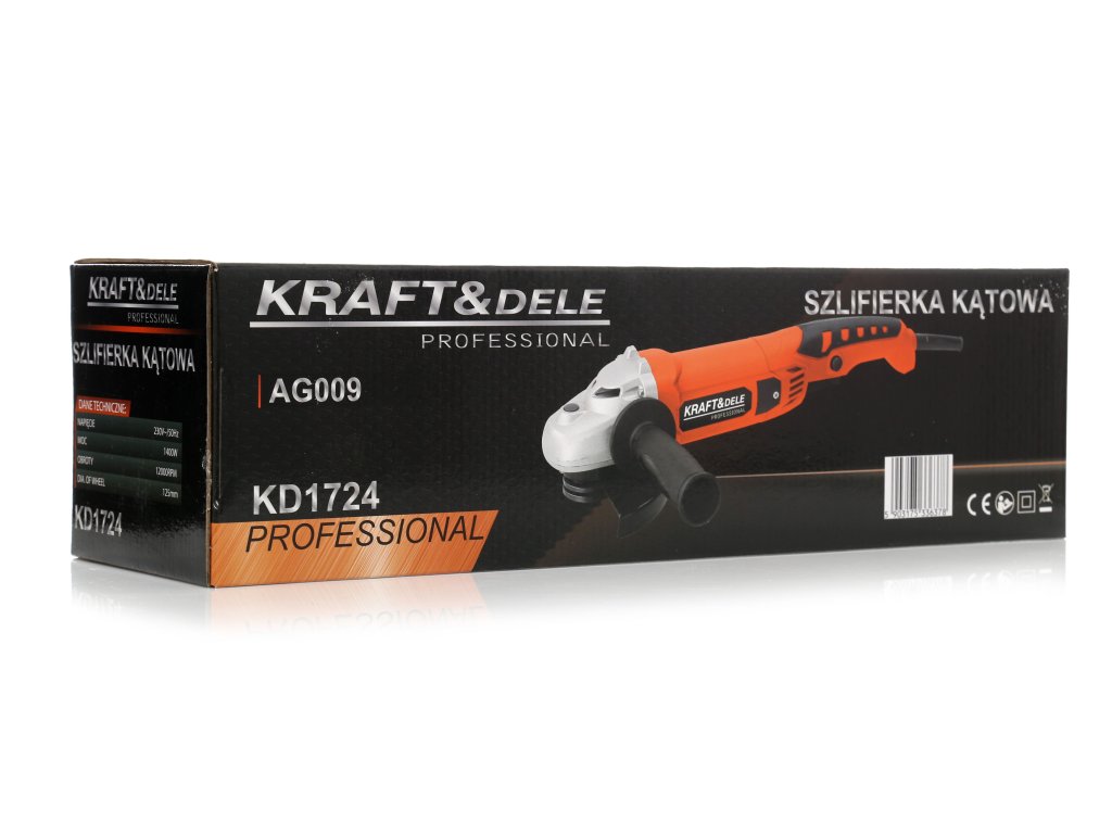 Ъглошлайф 1400 W KD1724 е предназначен за рязане и шлайфане на материали като метал, дърво, бетон, пластмаси, керамика, камък и много други. Уредът е оборудван с мотор с мощност 1400 W, което позволява използването на различни дискове с диаметър 125 мм. Мощността на мотора позволява достигане на обороти до 12 000 об./мин. Основната ръкохватка е изработена от специален противохлъзващ материал, който улеснява захвата на уреда в ръката.