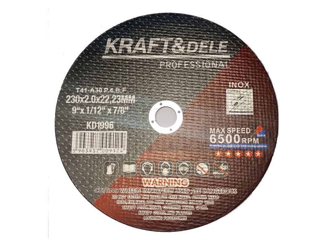 Brusný kotouč na kov, model KD1996, je navržen pro efektivní řezání kovových materiálů pomocí úhlové brusky. Tento kotouč je vyroben s použitím syntetické pryskyřice a je zesílen tkaninou ze skelných vláken, což zajišťuje jeho vysokou odolnost a bezpečnost při používání.