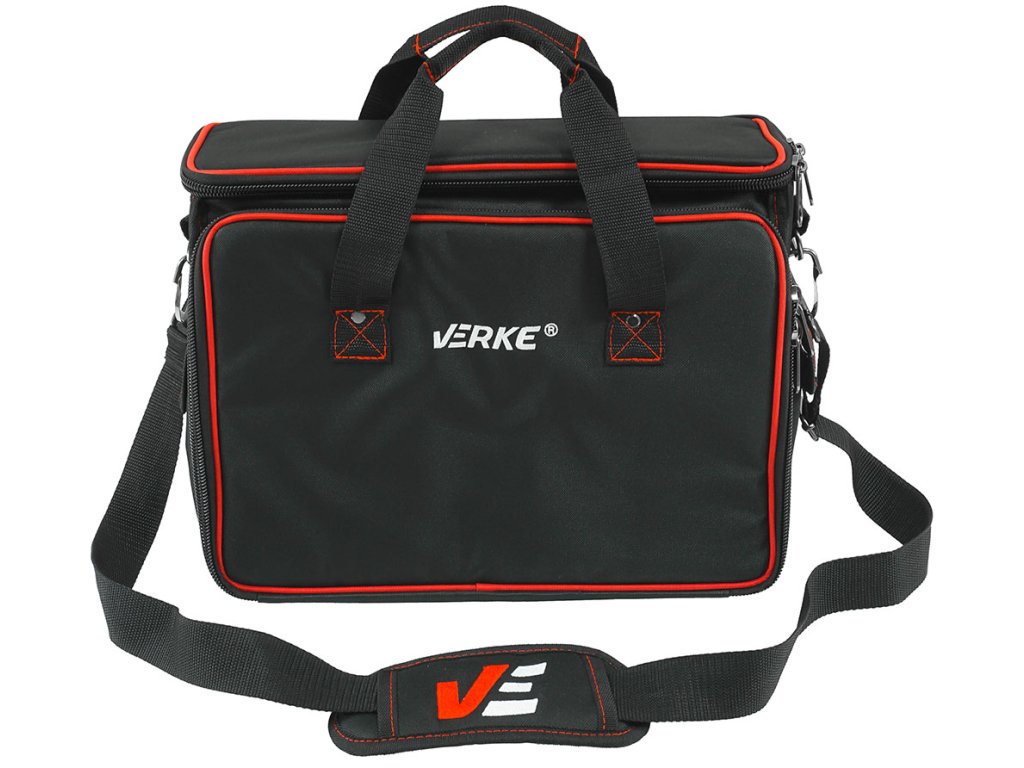 Чанта за инструменти 38x20x31 см VERKE V33015 е идеална за съхранение и пренасяне на инструменти и аксесоари на строителната площадка, в гаража или работилницата. Характеризира се с здрава конструкция, която я прави много практична и удобна за ежедневно ползване. Разполага с вътрешни и външни джобове за съхранение на отвертки, клещи и други малки инструменти. Голямото отделение с цип осигурява лесен достъп до инструментите. Шевовете и основният цип са усилени, пригодени за високо натоварване. Материалът е полиeстер 600D.