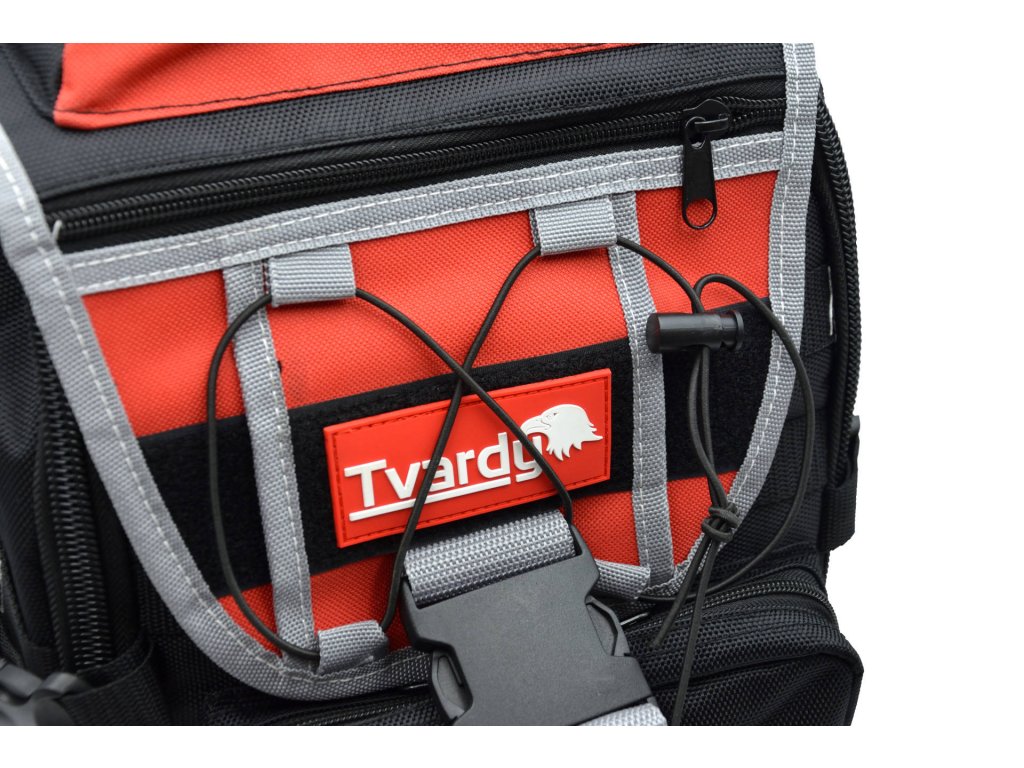 За улеснено съхранение и пренасяне раницата е оборудвана с 4 външни и 18 вътрешни джоба за инструменти. Ергономичните подплънени презрамки, заедно с гръден колан и дишащ гръб, осигуряват комфорт при носене. Раницата е изработена от здрава материя - Полиестер 600D.