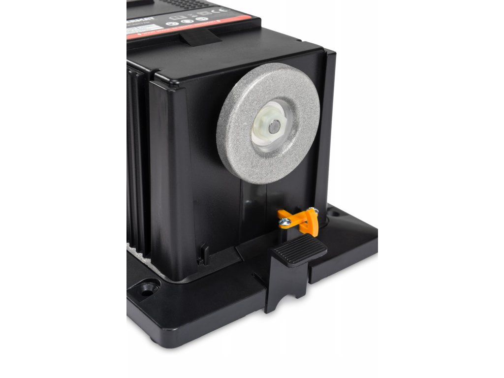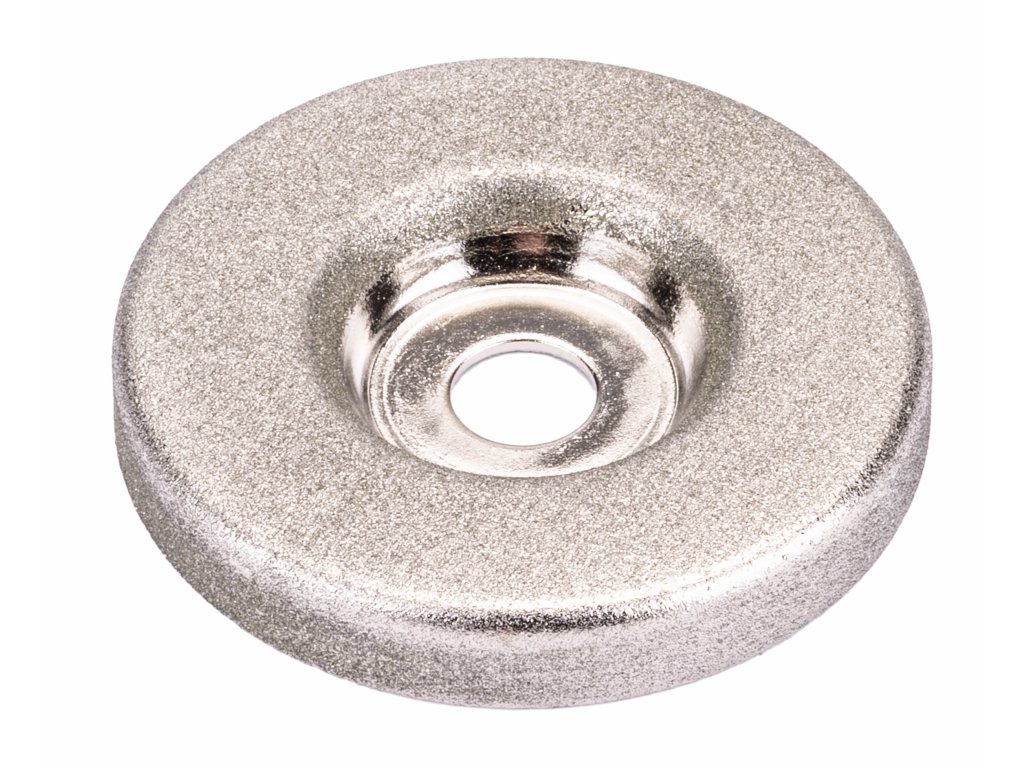 Дискът е покрит с диамантен прах, осигуряващ висока издръжливост и дълъг експлоатационен живот. Диамантените дискове се износват много по-бавно в сравнение с традиционните абразивни камъни, използвани в точилките, което гарантира по-ефективно и прецизно заточване.