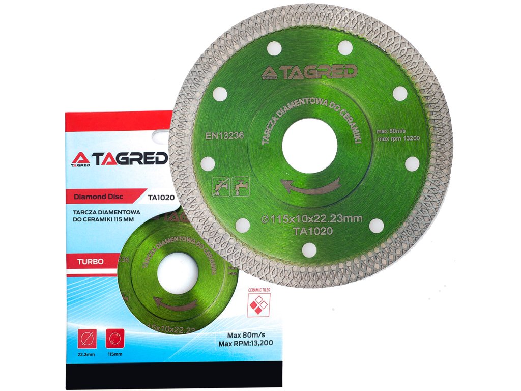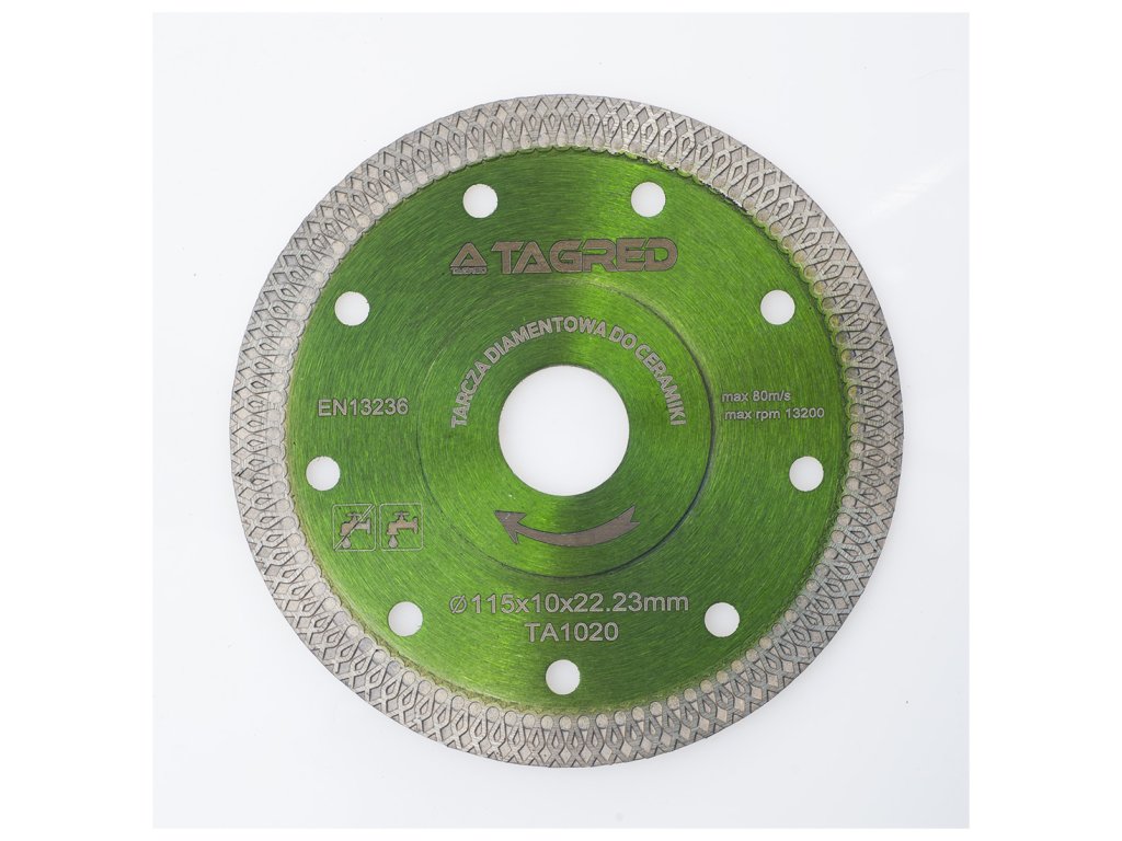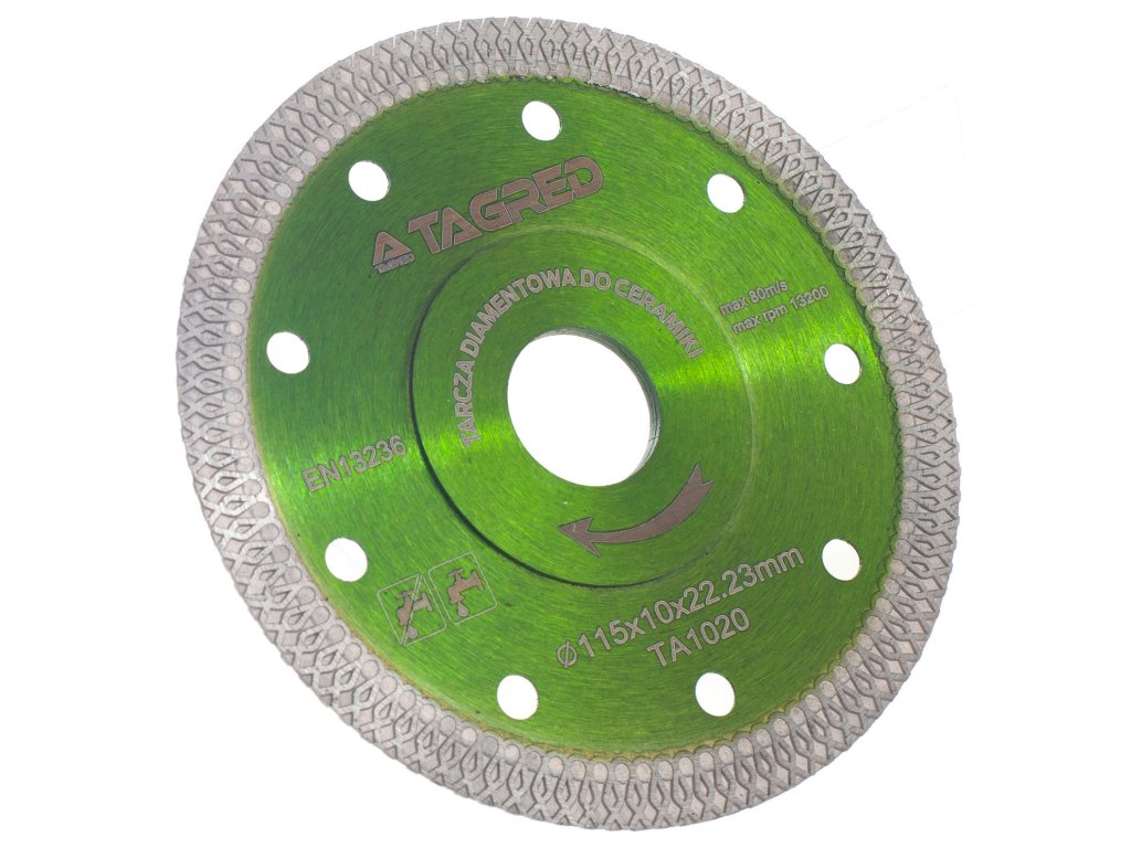 Диамантен диск за камък, гранитогрес, плочки, керамика 115 мм е универсален професионален инструмент, създаден за ефективно рязане на гранит, мрамор, керамика и теракота. Този диск е предназначен за ръчни ъглошлайфи за сухо рязане и има закрепване 22,23 мм. Благодарение на своята конструкция осигурява висока производителност и позволява бързо и прецизно рязане на различни видове гранит.