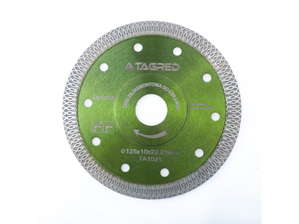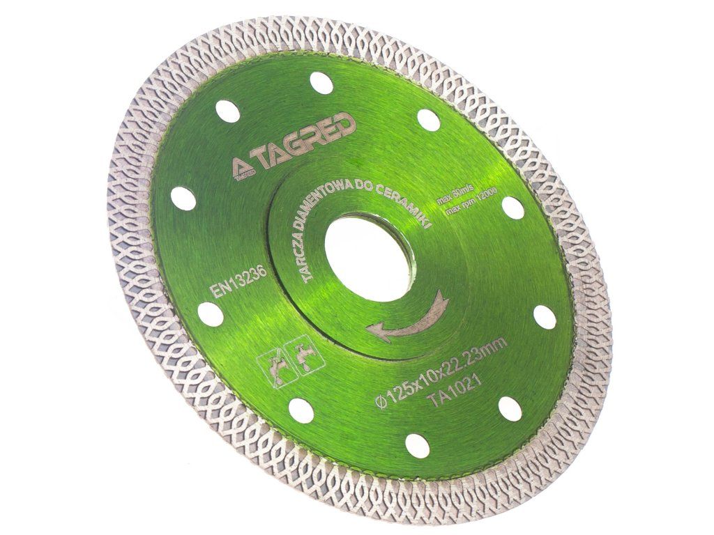 Диамантен диск за камък, гранитогрес, плочки, керамика 125 мм е универсално решение, идеално за професионалисти и любители, които търсят прецизно рязане на гранит, мрамор, керамика и теракота. Този диск е предназначен за ръчни ъглошлайфи с крепеж 22,23 мм и осигурява бързо и точно рязане на разнообразни материали.