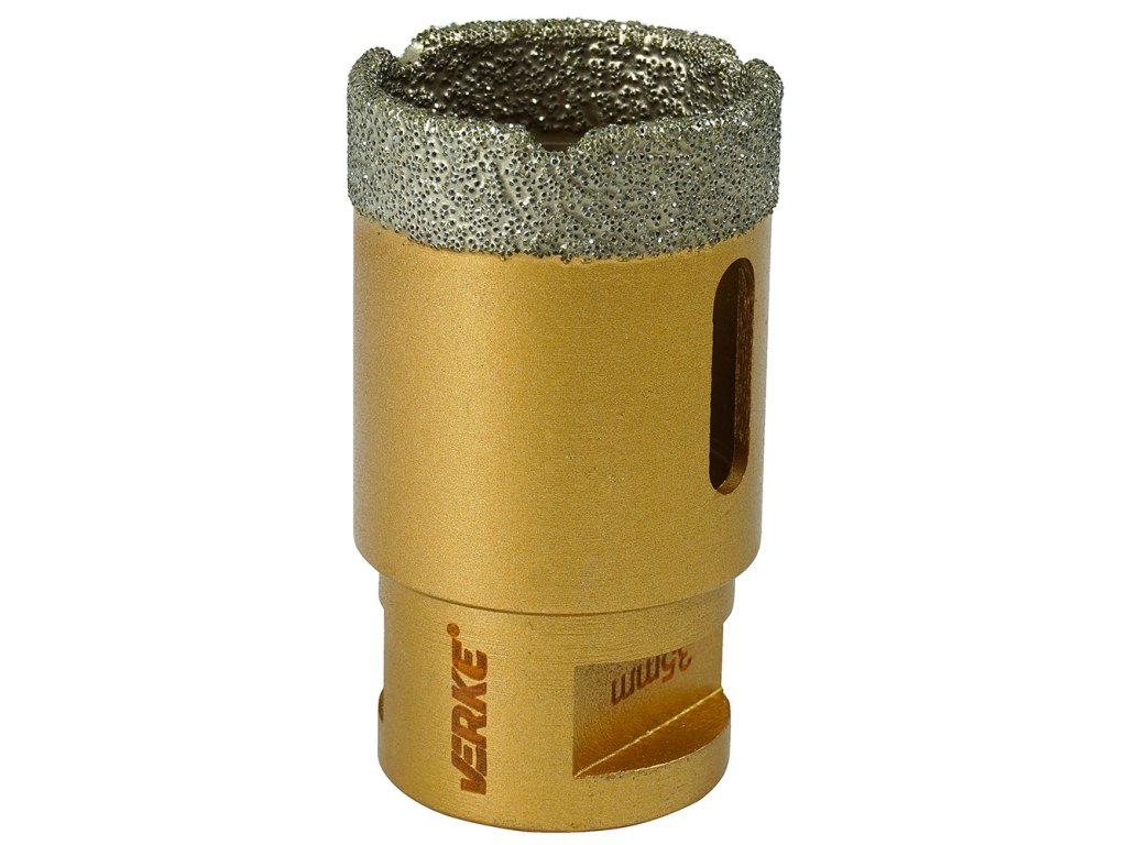 Диамантена боркорона M14, 35 мм VERKE V05135, оборудвана с монтажен резба M14 за закрепване в ъглошлайфи. Идеална за пробиване на отвори в материали като: гранитогрес, керамични плочки, клинкер, глазура и естествен камък.