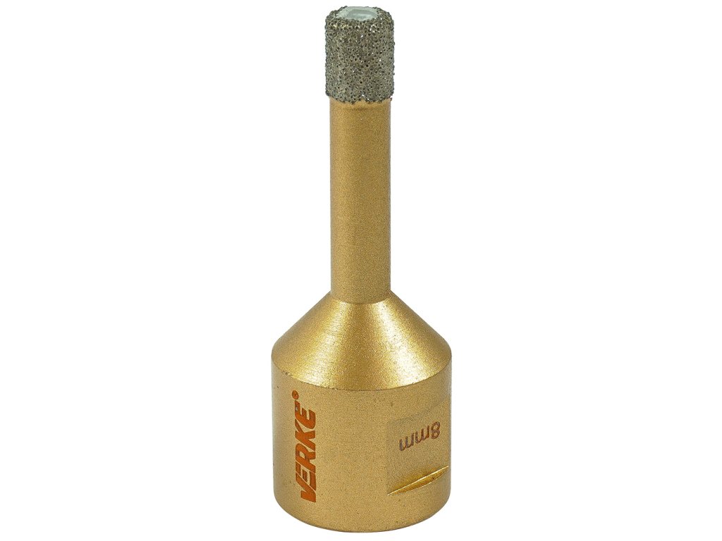 Диамантена боркорона M14, 8 мм VERKE V05108, оборудвана с резба M14 за закрепване в ъглошлайфи. Идеална за пробиване на отвори в материали като гранитогрес, керамични плочки, клинкер, мозайка и естествен камък.
