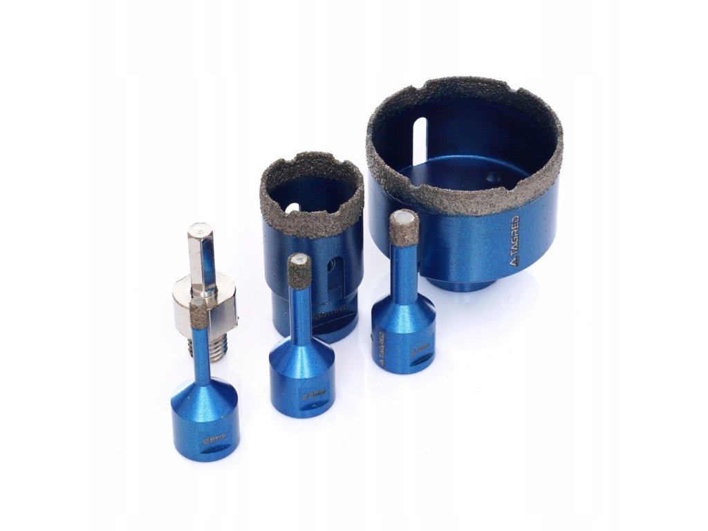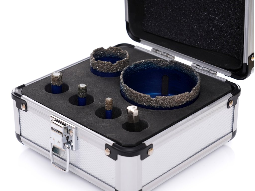 Диамантени боркорони за керамика, камък, гранитогрес, плочки 6, 8, 10, 35, 68 мм M14, куфар, адаптер, комплект от 6 части
