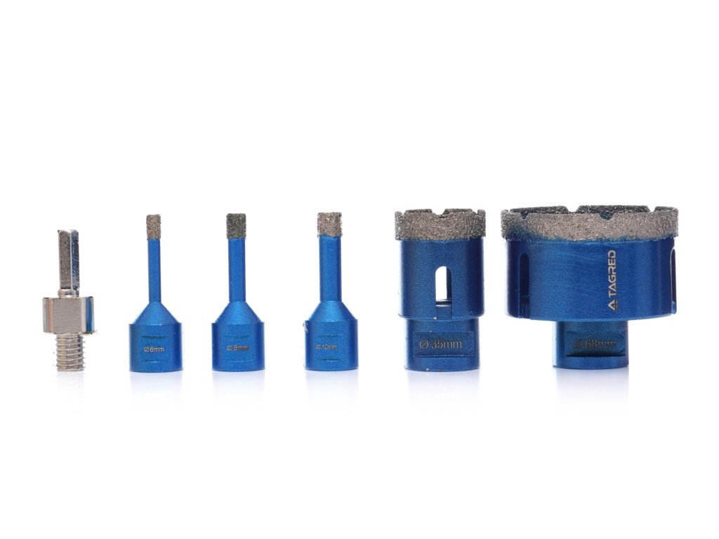 - Диамантени боркорони за камък, керамика, гранитогрес и плочки с диаметри 6, 8, 10, 35 и 68 мм