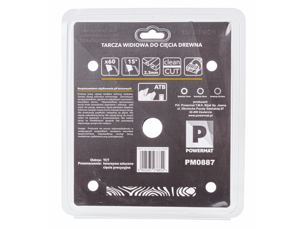 Със стандартен диаметър за настолни и ъглови триони, външният размер на диска е 190 мм, а монтажният отвор е с размер 30 мм.