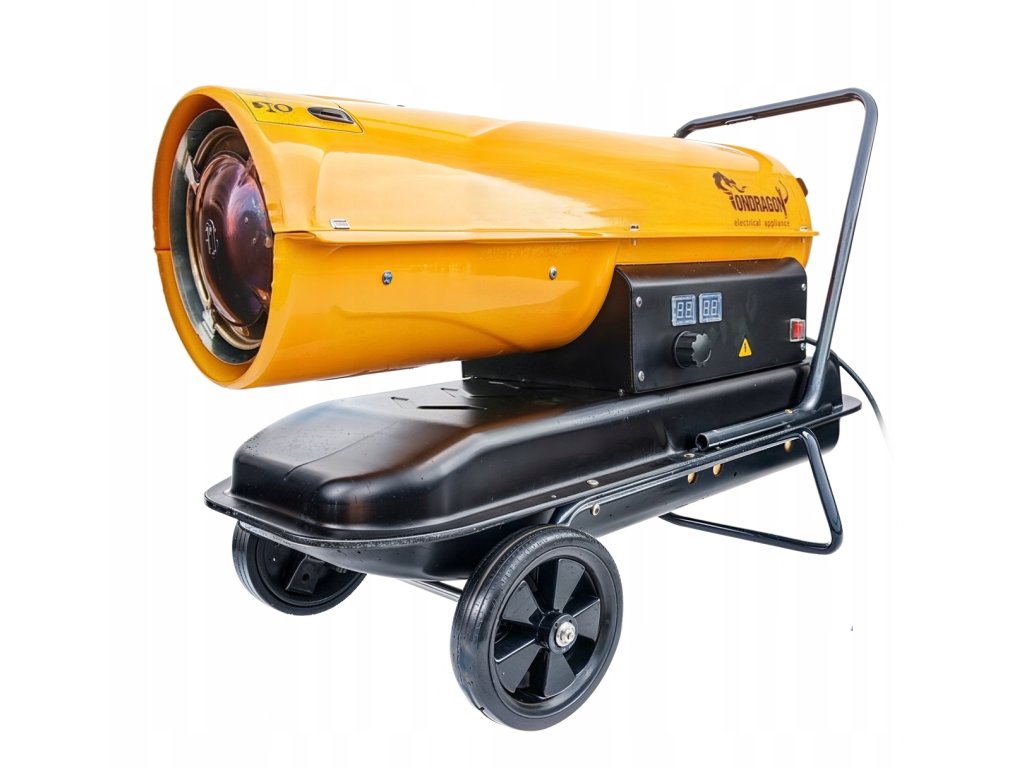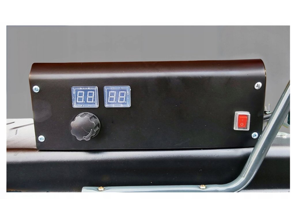 Мощен дизелов нагревател с мощност 40 kW, създаден за бързо и ефективно отопление на големи помещения като работилници, халета или складове. Благодарение на цифровия термостат с плавно регулиране на температурата и функцията за автоматично включване и изключване, предлага удобно управление и оптимизирана консумация на гориво. Два LCD дисплея улесняват настройката и следенето както на текущата, така и на желаната температура.