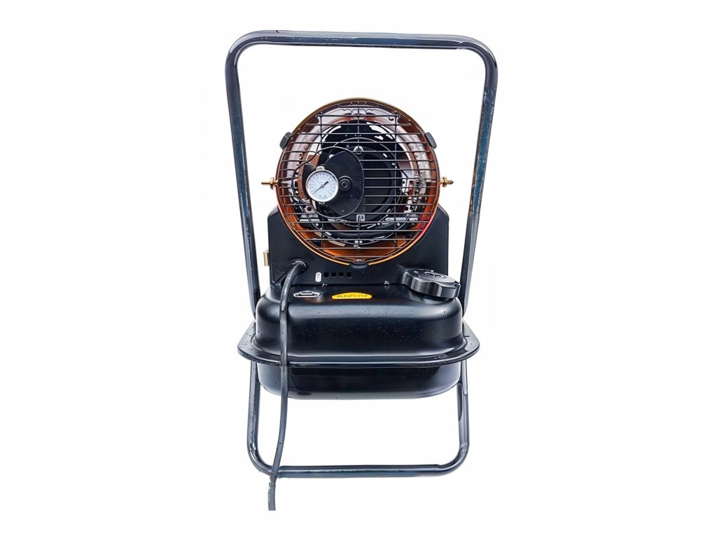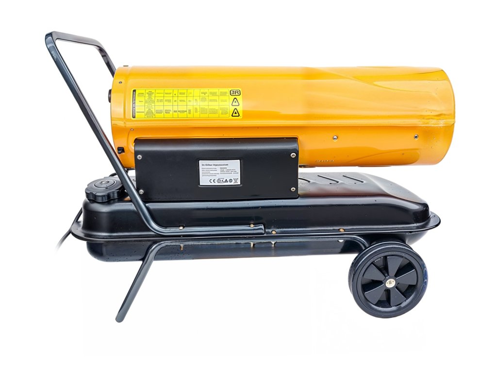 Нагревателят е оборудван с мощен вентилатор с въздушен поток от 850 м³/ч, който гарантира равномерно разпределение на топлината. Здрава конструкция с големи колела улеснява транспортирането и гъвкавото приложение.