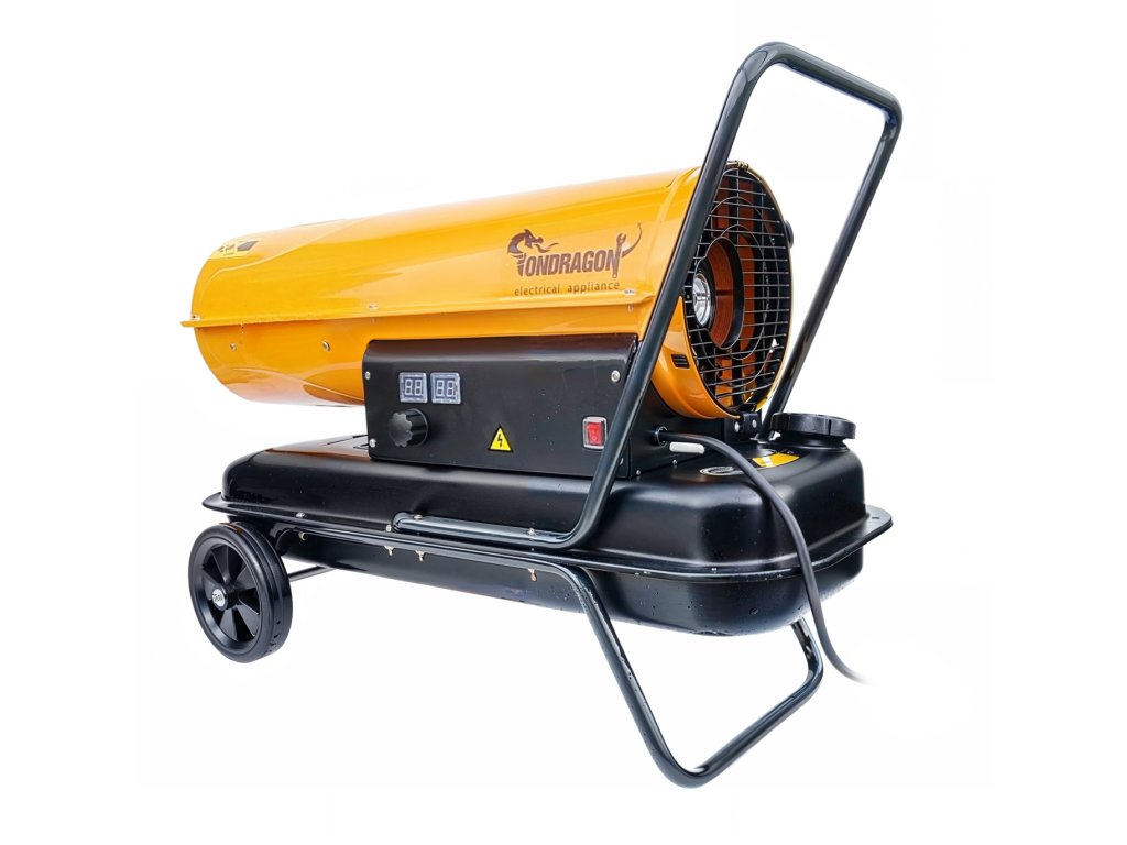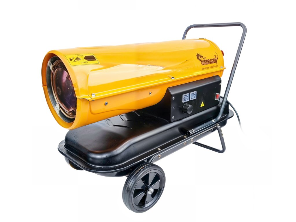 Мощен дизелов нагревател с мощност 40 kW, проектиран за бързо и ефективно отопление на големи помещения като работилници, халета или складове. Благодарение на дигиталния термостат с плавно регулиране на температурата и функция за автоматично включване и изключване, осигурява удобен контрол и оптимизирана консумация на гориво. Два LCD дисплея позволяват лесна настройка и наблюдение на текущата и желаната температура.