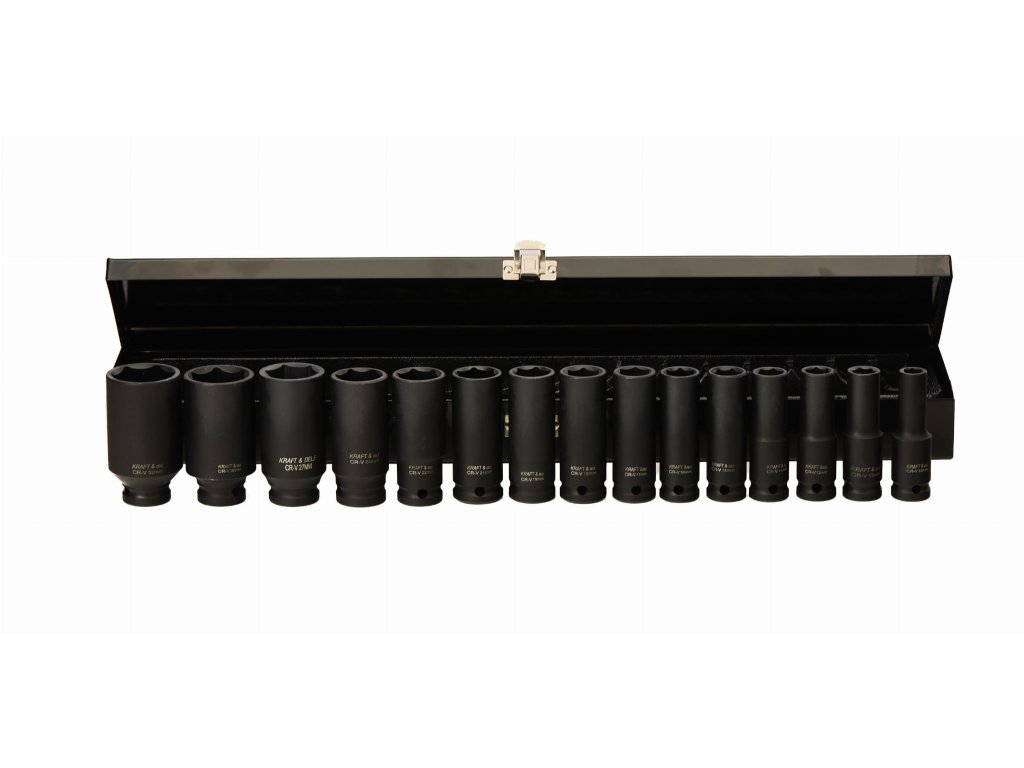 Професионален комплект ударни вложки за гаечни ключове марка Kraft&Dele с означение KD11769, предназначен за работа с пневматични инструменти, които работят в много тежки условия и при променливи натоварвания.