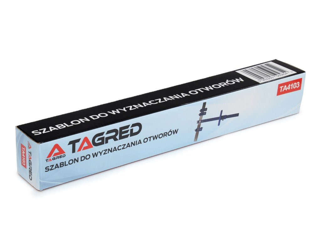В горната част на шаблона има подвижна стоманена шина с три плъзгащи се маркировки, които служат за прецизно определяне на пробивните точки. След като зададете разстоянието, достатъчно е да затегнете фиксиращия винт, който запазва всички настройки и ви позволява да работите ефективно и без напрежение.