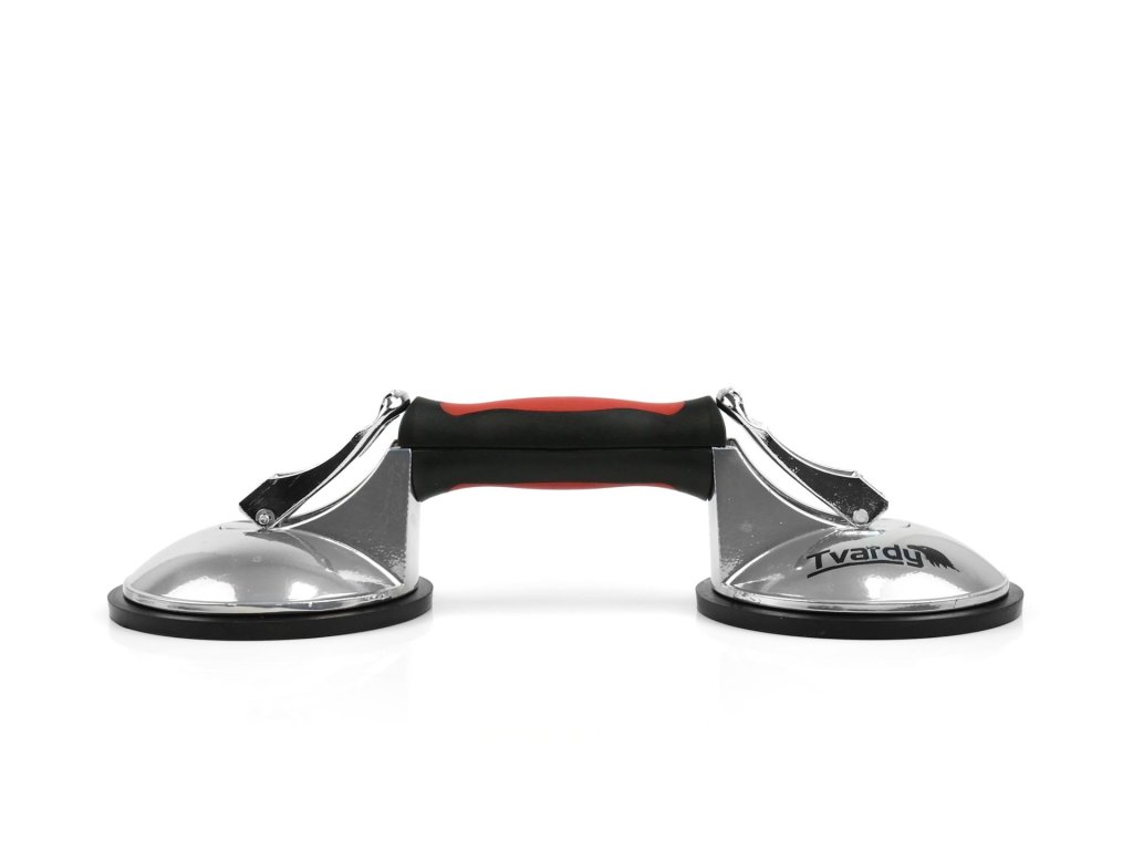 Държач с вендуза за стъкло ALU 2x125мм 120кг T01251 е проектиран за пренасяне на предмети с плоска и гладка повърхност, като стъкла, прозорци, автомобилни стъкла, ламарини, ламинати, плочки и други, чието тегло не надвишава 120 кг. Висококачествените гумени вендузи, активирани чрез лостове, осигуряват надеждно и сигурно захващане при пренасяне на тези елементи. Корпусът на държача е изработен от висококачествена алуминиева сплав, а дръжката е покрита с противохлъзгаща пластмаса.