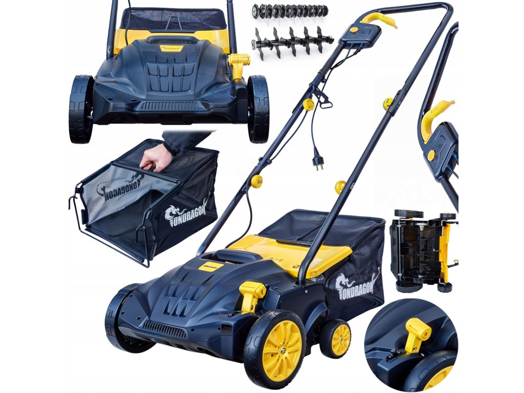 Осигурете си плътен и здравословен тревен килим с електрически аератор / вертикутатор 3в1 с мощност 2800W. Той предлага аерация, вертикутaция и събиране на отпадъци в кош с вместимост 30 л. Ширина на работа 320 мм, 16 ножа, 20 пружини и 4 степени на регулиране на дълбочината гарантират ефективна поддръжка. Лека конструкция, ергономична дръжка и здрави колела за лесно управление. Перфектна грижа за тревата без усилия.