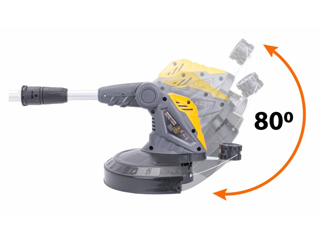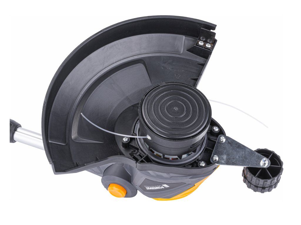Защитен предпазител осигурява безопасна работа в близост до стени чрез защита на режещата система. Допълнително предимство е системата за бърза смяна на кордата.