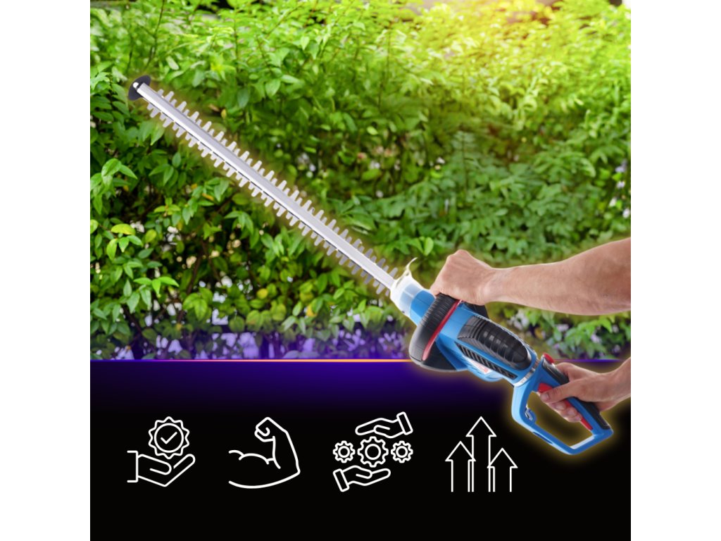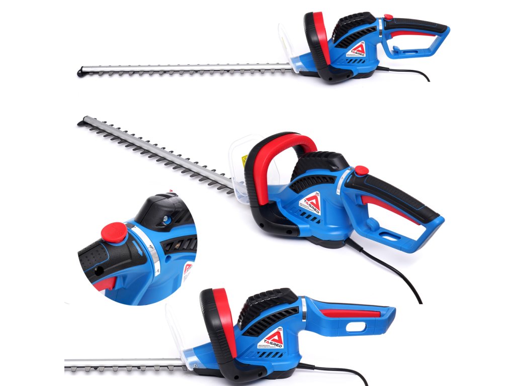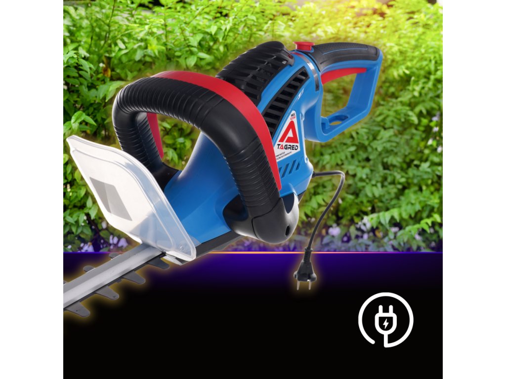 Мощна електрическа ножица за жив плет TAGRED TA495, идеална за подстригване на малки и средни живи плетове. Благодарение на високоефективен мотор с мощност до 1800 W и ниско тегло, тази ножица е отличен избор за ефективна и удобна работа. Ножицата е оборудвана с въртяща се дръжка с пет регулируеми позиции, осигуряваща комфорт при работа. Острието е изработено от леката и здрава високовъглеродна стомана, гарантираща дълъг живот и прецизно рязане.