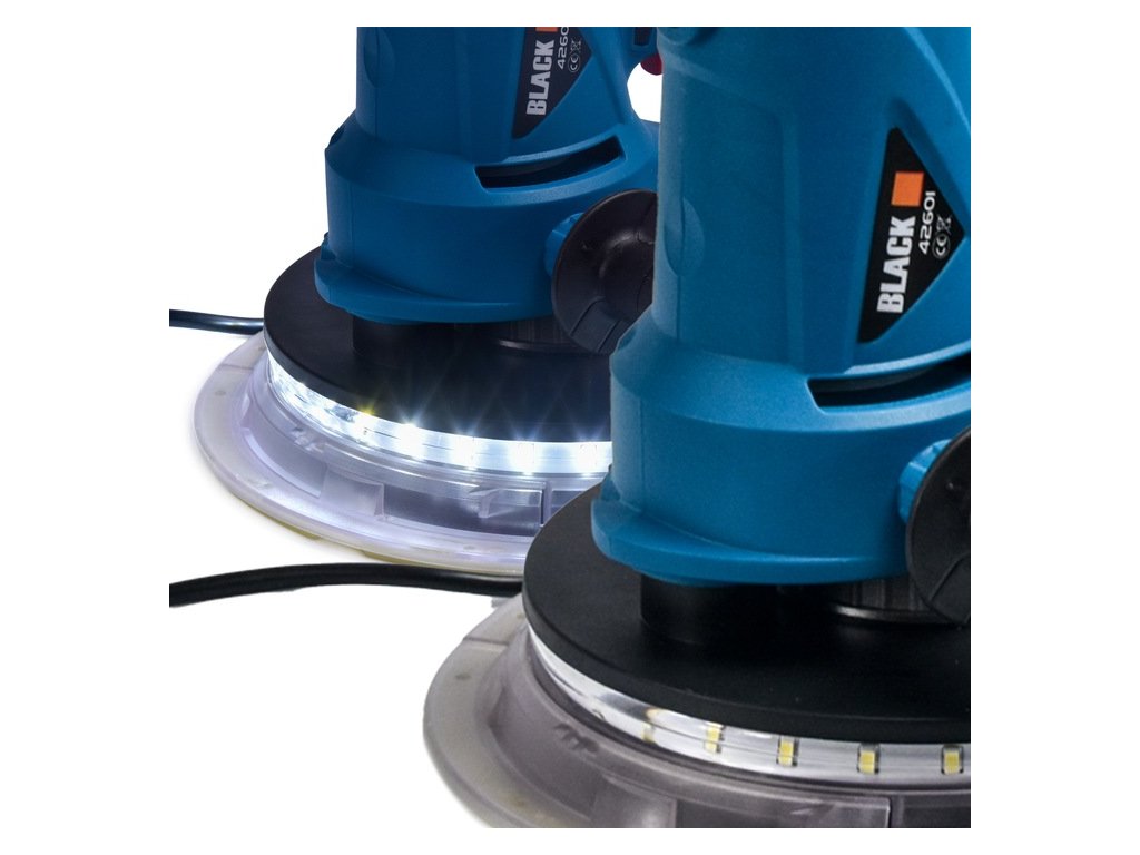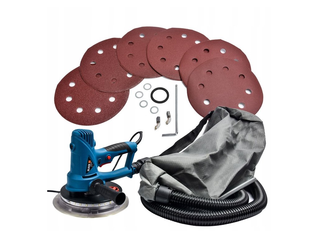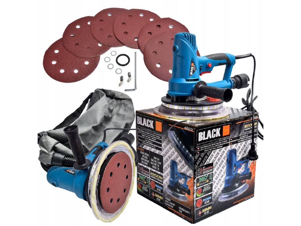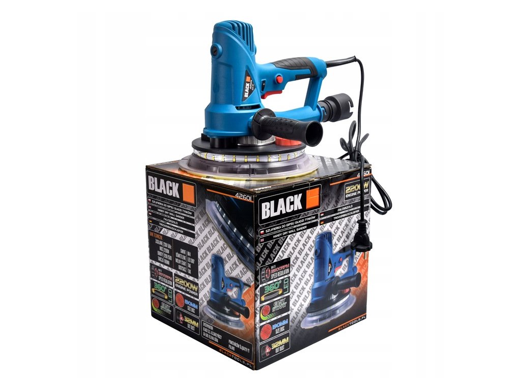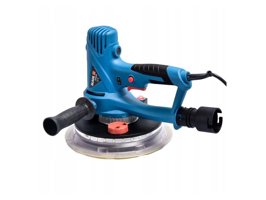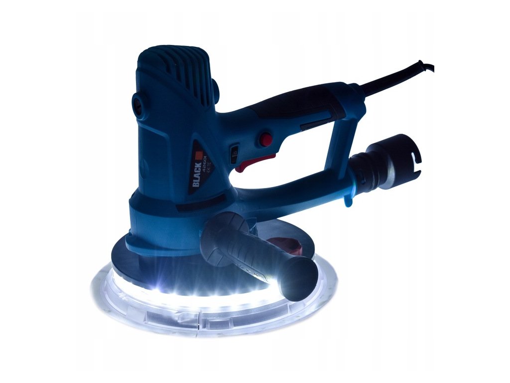 Електрическа шлайфмашина за стени и тавани 2200W с LED осветление с мощност 2200 W и диаметър на диска 190 mm е идеален инструмент за бърза и ефективна обработка на повърхности. Оборудвана е с LED осветление около диска, което позволява прецизна работа дори в слабо осветени пространства. Благодарение на възможността за свързване към професионален прахосмукач и контейнер за събиране на праха, минимизира разпространението на прах по време на шлайфане. Шлайфмашината разполага също с плавен старт и регулиране на скоростта, осигуряващи оптимално адаптиране към материала и безопасна работа.