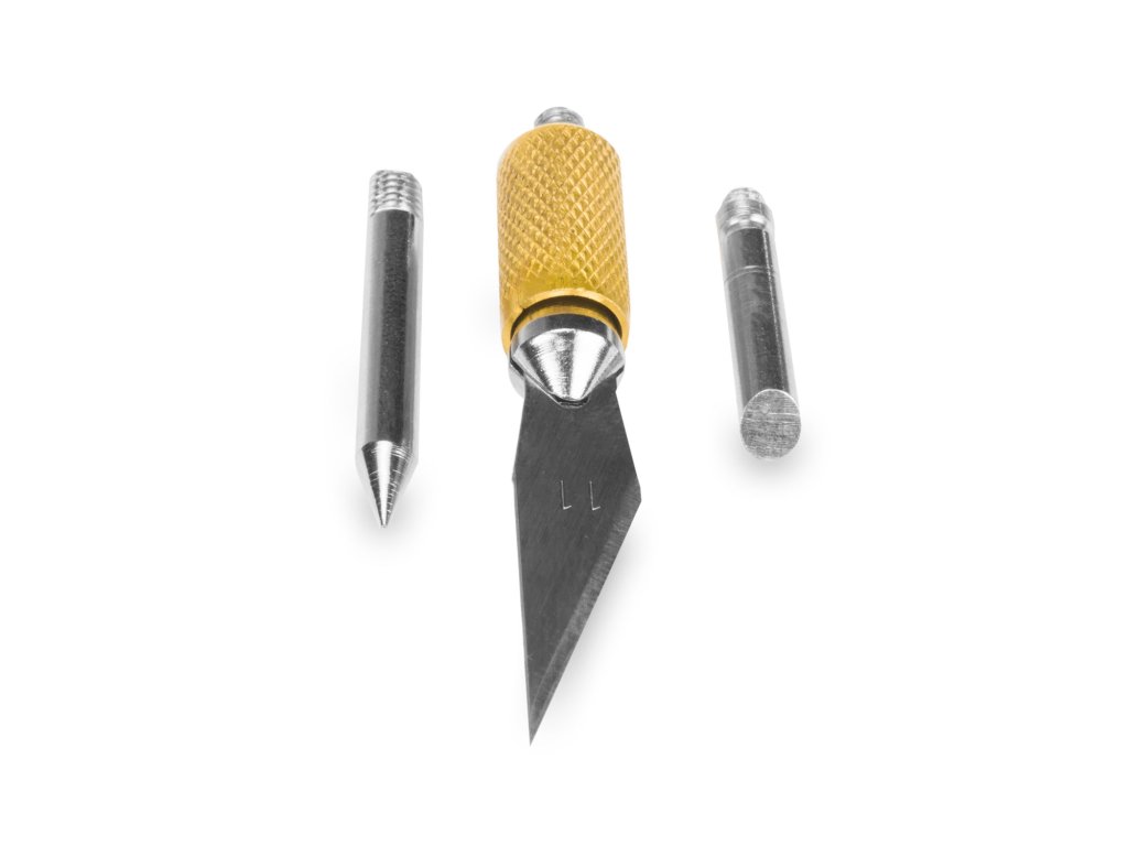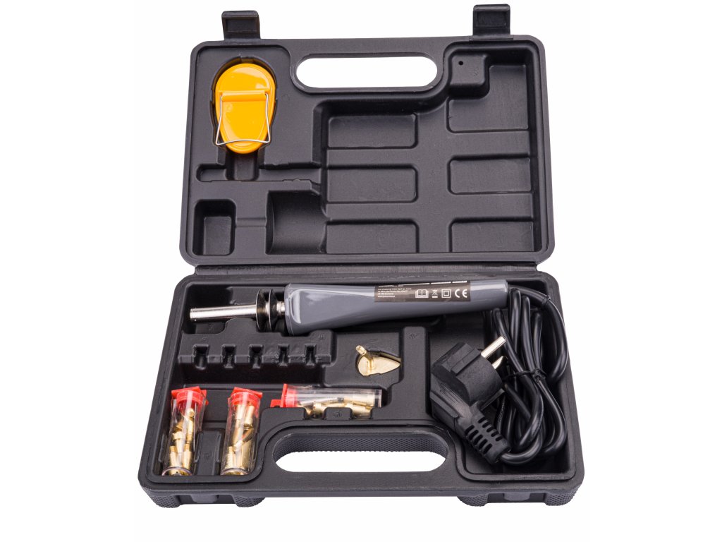 В комплекта са включени 22 различни накрайника, които позволяват изработването на разнообразни шарки върху дърво, корк и кожа. Прикаченият нож за изгаряне улеснява рязането на различни материали след нагряване. Накрайниците са изработени от месинг, което осигурява бързо достигане на работна температура. В комплекта е включена и поставка за електрическата спойка, позволяваща сигурно отлагане на инструмента.