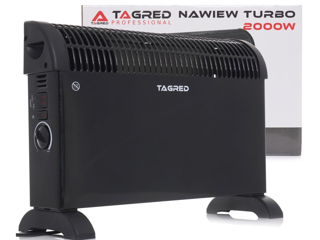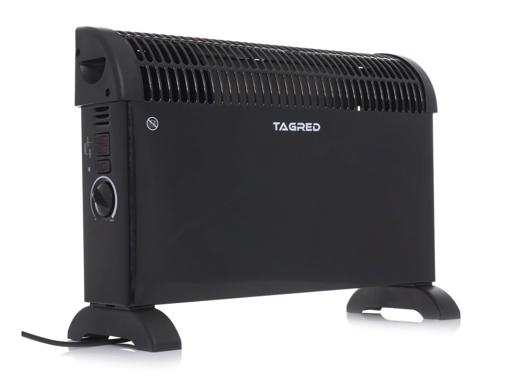 Електрически конвекторен радиатор с термостат, TURBO вентилатор, мощност 2000W, черен е ефективно и икономично решение за вашите отоплителни нужди. Идеално подходящ за отопление на малки апартаменти, къщи, офиси, магазини или медицински кабинети. Модерната технология на марката TAGRED осигурява необходимия топлинен комфорт и помага за намаляване на разходите за отопление.